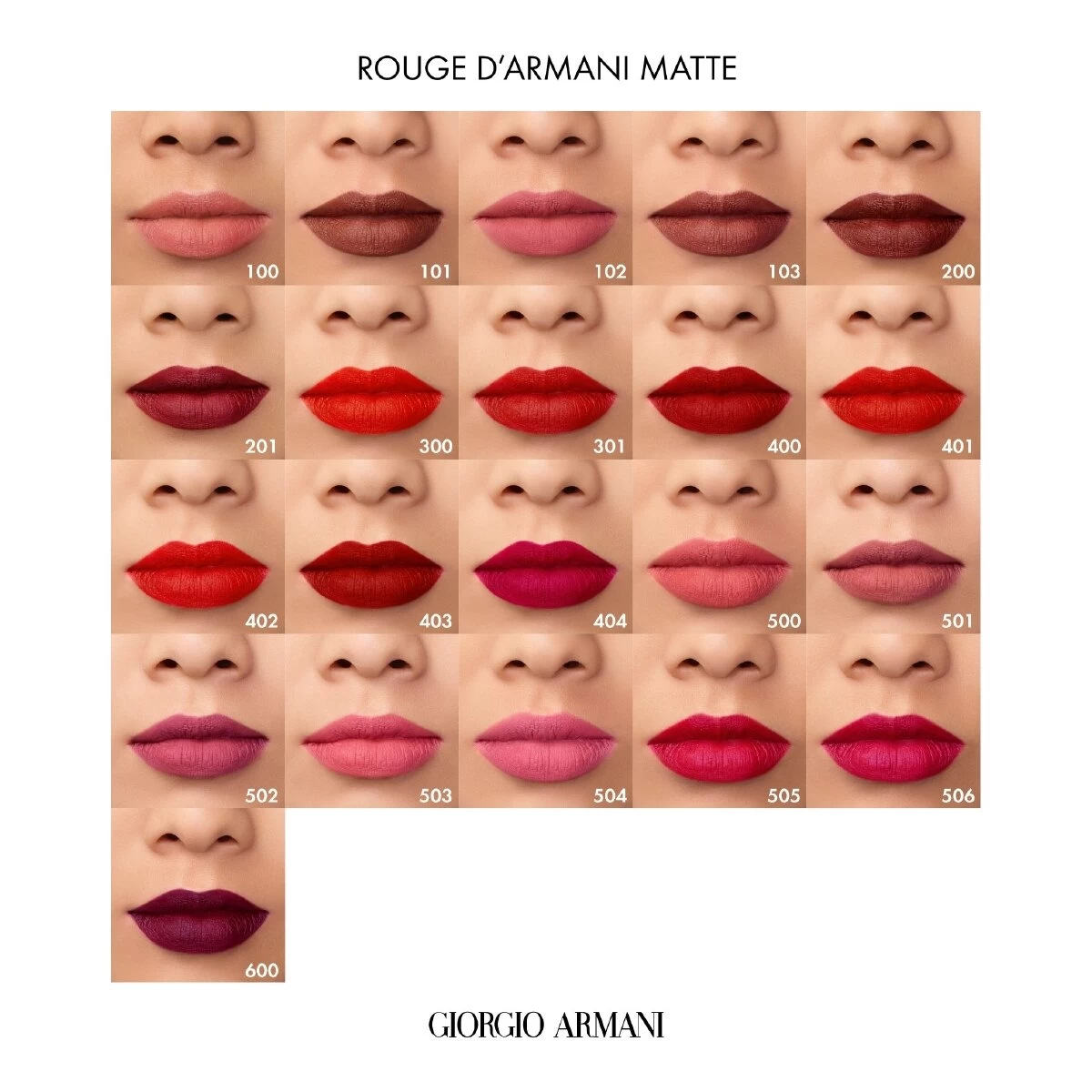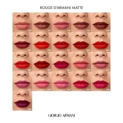 Rouge d’Armani Matte est disponible dans une riche palette de teintes nude, rose et orange sophistiquées, et de coloris rouges puissants et iconiques, promettant une signature lèvres irrésistible pour toutes les femmes Armani.