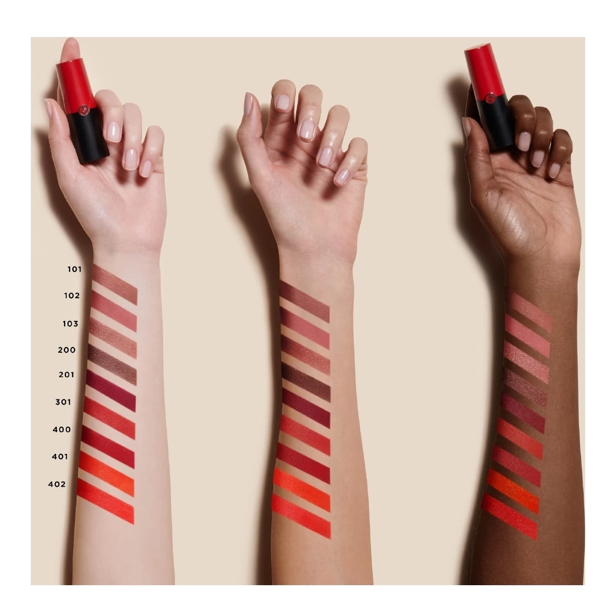 Grâce à sa formule révolutionnaire pouvant contenir jusqu’à 50 % de pigments en plus par rapport aux rouges à lèvres mats traditionnels, Rouge d’Armani Matte réinvente le concept même du mat, habillant les lèvres d’une couleur intense et uniforme, à la couvrance optimale.